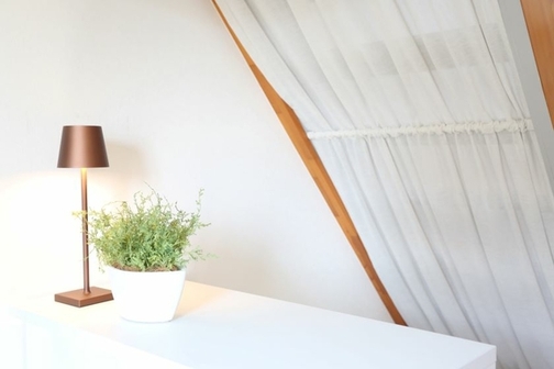 「初期費用を抑えて、退去時の原状回復も簡単にできるようにしたい」とのご希望もありましたので、カーテンでゆるやかに仕切ることにしました。