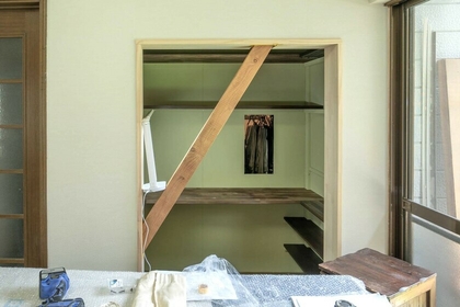LDKに隣接した和室押入れを、ご主人様が奥様のためにDIYされましたが、仕上げをするタイミングがないまま数年間使用されていました。