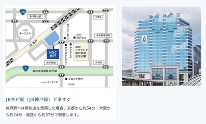 ・今回会場となる HDC 神戸(ハウジング・デザイン・センター神戸)は、水まわり設備やインテリアをはじめ、新築・リフォーム・不動産情報のほか、スクールなど“住まい”に関する約 50のショールームが集まっており、“住まいの情報”が「ワンストップ」で得られる、神戸ハーバーランド内の「見て・触れて・体感できる」総合施設です。